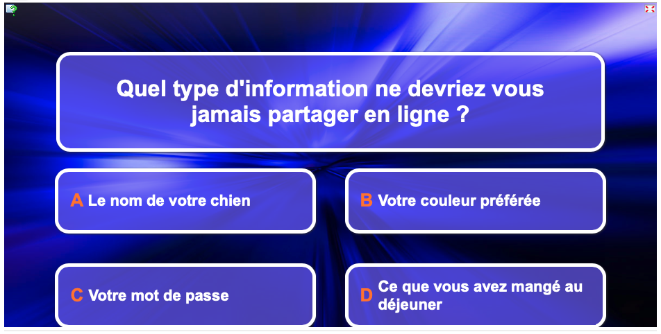 Objectif : Ici, nous allons travailler un peu le vocabulaire relatif à la cybersécurité grâce à un Learning Apps.