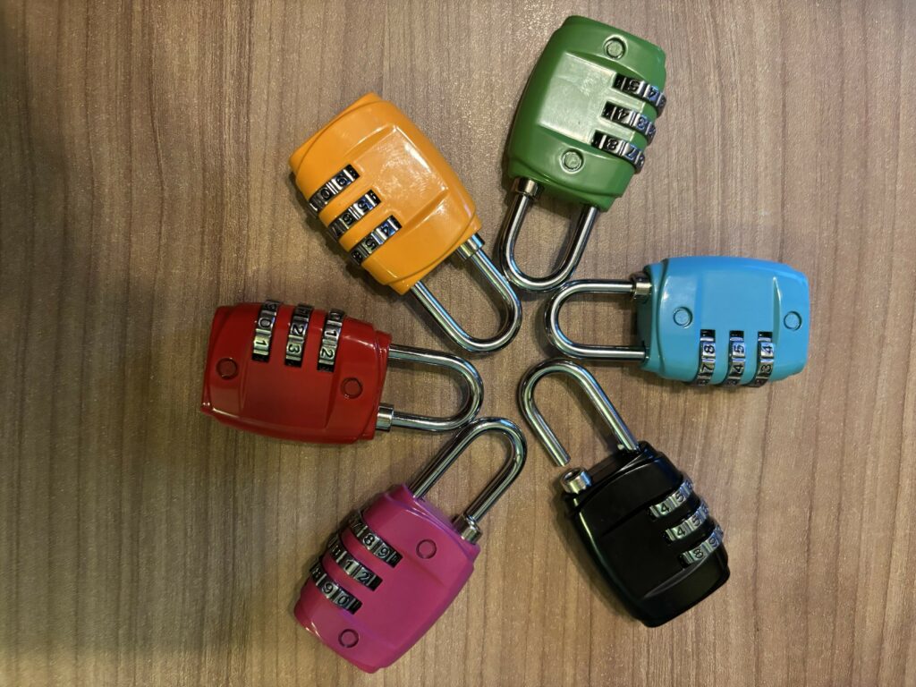 – 6 cadenas à 3 chiffres (de préférence de couleurs différentes, ou avec une gommette de couleur, je les ai trouvés sur Amazon pour moins de 10 euros);
