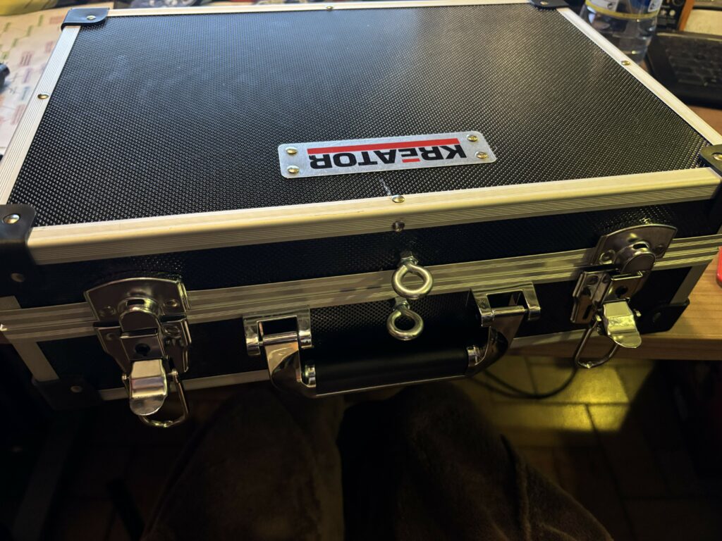 – 1 valise avec 2 pitons (je l’ai trouvée dans un magasin de bricolage, les 3 valises de tailles différentes étaient à une vingtaine d’euros pour les 3);